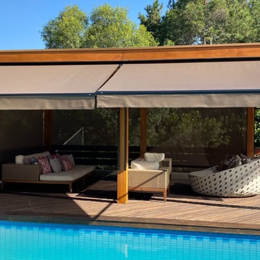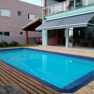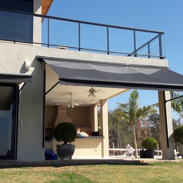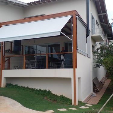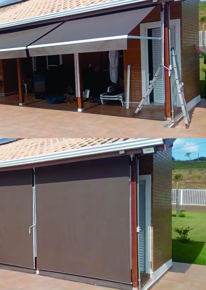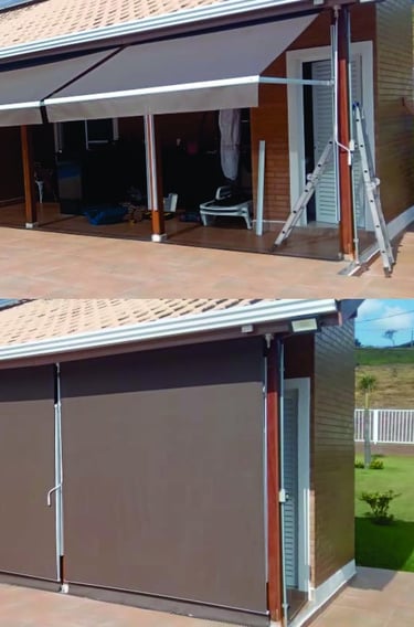 O Toldo Cortina com Braço Reto é ideal para quem busca proteção lateral contra sol, vento e chuva, sem abrir mão da praticidade e do design moderno.